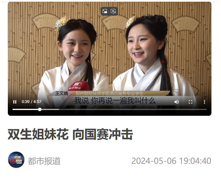 2024年5月6日 河南广播电视电台- 大象新闻-双生姐妹花 向国赛冲击