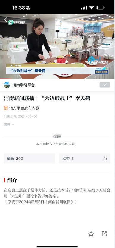 2024年5月6日 学习强国-河南学习平台——”手“创河南 李天鹤:”六边形战士“