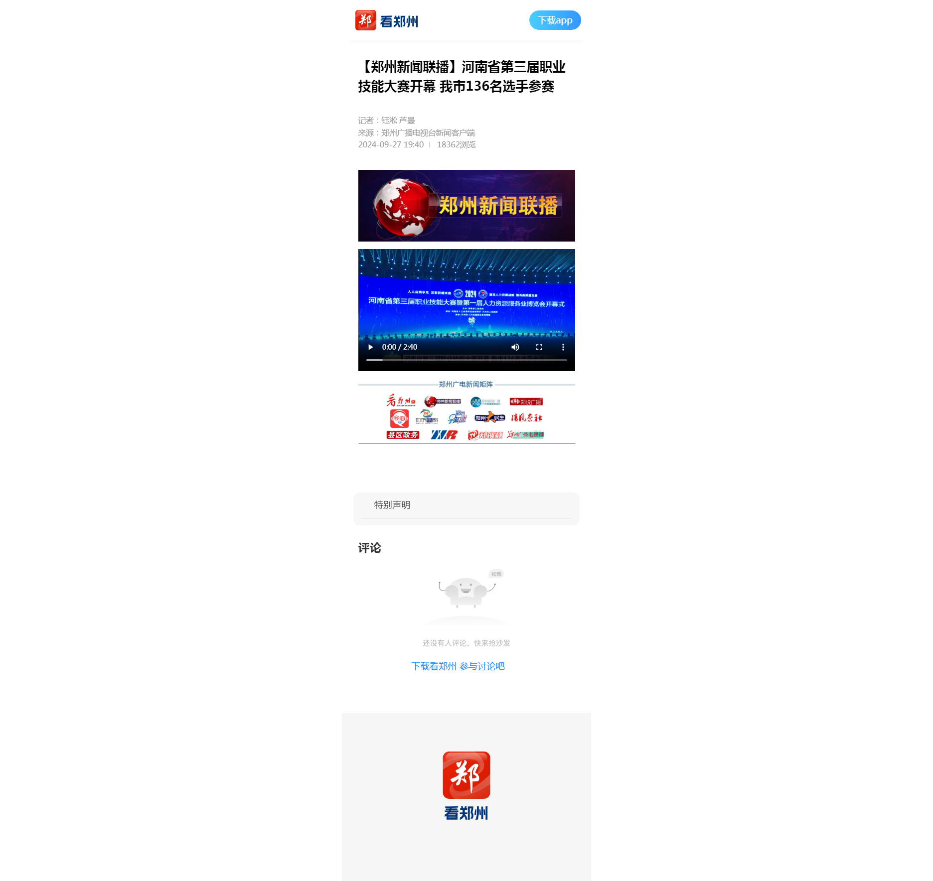 【郑州新闻联播】河南省第三届职业技能大赛开幕 我市136名选手参赛